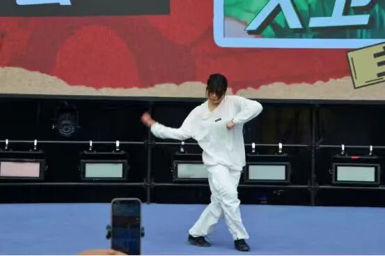 志愿者们在充分考虑老年粉丝的兴趣与需求的基础上,精心设计了多项互动环节。汉服志愿者身着明制、唐制传统服饰,与老年粉丝亲切合影,为他们留下美好的回忆;街舞表演者陈旻以一首《海底 + undefeated》串烧舞蹈点燃全场;身着狮子服的机器狗巡游表演,萌趣十足,吸引老年粉丝纷纷与机器狗合影留念;舞蹈机器人跟随《Go Again》《大中国》旋律,以科技舞步踏响复兴铿锵节奏,老年粉丝们也被这充满科技感的表演深深吸引。