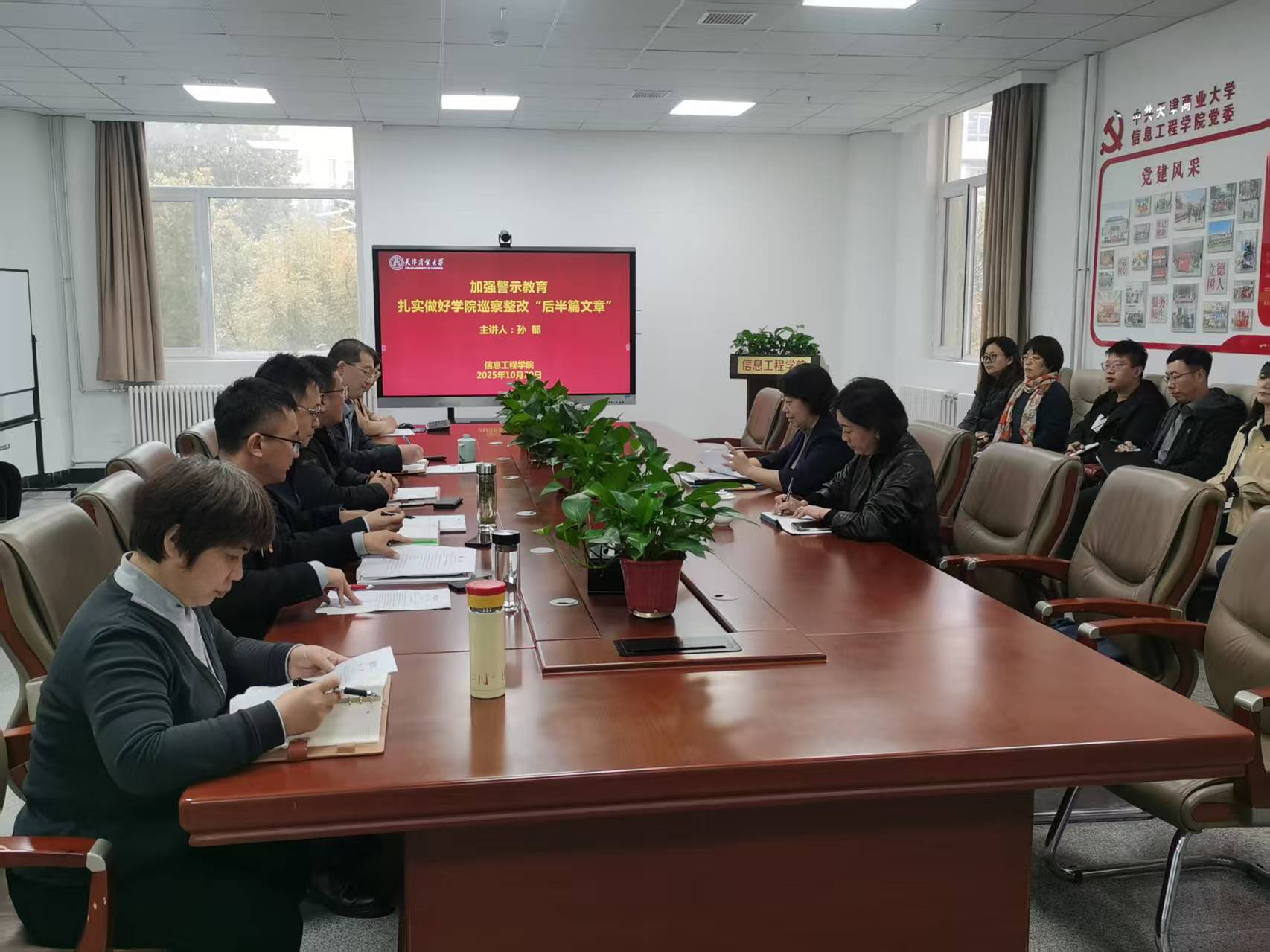 10月29日,信息工程学院邀请市纪委监委驻天津商业大学纪检监察组副组长孙郁、校党委督查室主任王琳琳来院开展“加强警示教育 扎实做好学院巡察整改‘后半篇文章’专题培训。学院班子成员、各党支部书记、各系部室主任、学院纪委成员、全体行政人员参加。