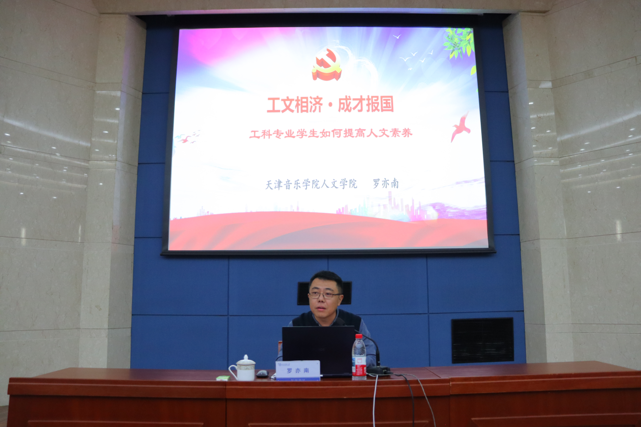 10月30日下午,机械工程学院在图书馆国际报告厅举行“光擎力行”新青年计划品牌系列活动首场专题党课报告会。天津音乐学院人文学院党总支书记罗亦南应邀讲授专题党课,学院党委书记张莹、校关工委秘书长刘会洪出席报告会,学院师生党员、发展对象、入党积极分子等300余人参加。