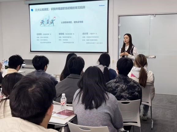 天商毕业、现就职于谷川的王怡楠学姐,以“让自驱力成为超能力”为核心,结合自身经历解答了“专业知识如何应用”“招商核心能力有哪些”等学生关切问题,用真实心路历程规避职业误区;21级招商班学姐刘艳艳则从谷川员工视角出发,讲述她在大学期间就接触到一线招商工作,并在带教师傅指导下快速成长。