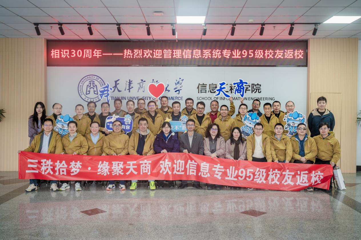 11月1日,信息工程学院举办“三秩拾梦·缘聚天商”校友返校活动,1995级管理信息系统专业的30余名校友重聚母校,共同庆祝相识30周年。信息工程学院领导班子成员及校友联络服务中心教师代表共同参加活动,与校友们共忆青春、共话学院发展、共叙师生情谊。