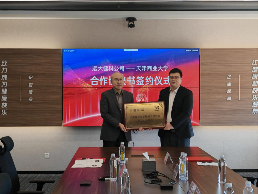 双方围绕产学研协同创新、横向课题合作、人才实习就业、行业发展趋势等议题深入交流,达成广泛共识。随后,在双方代表见证下,魏恩雨与陈爱强共同签署合作协议书,学院为企业授“天津商业大学机械工程学院实习实践基地”牌匾。