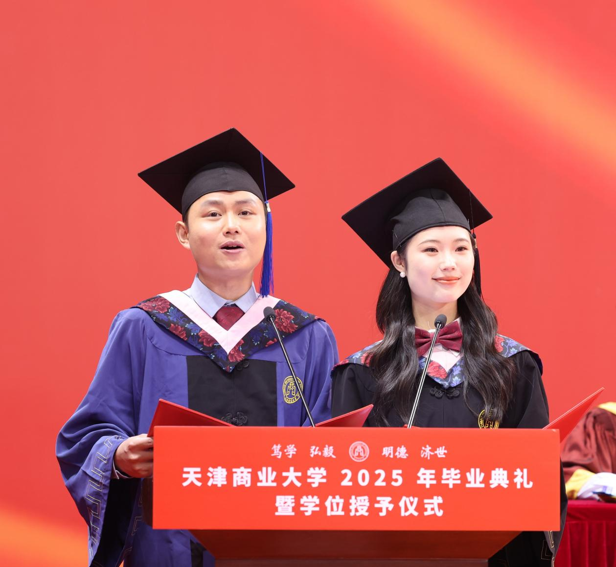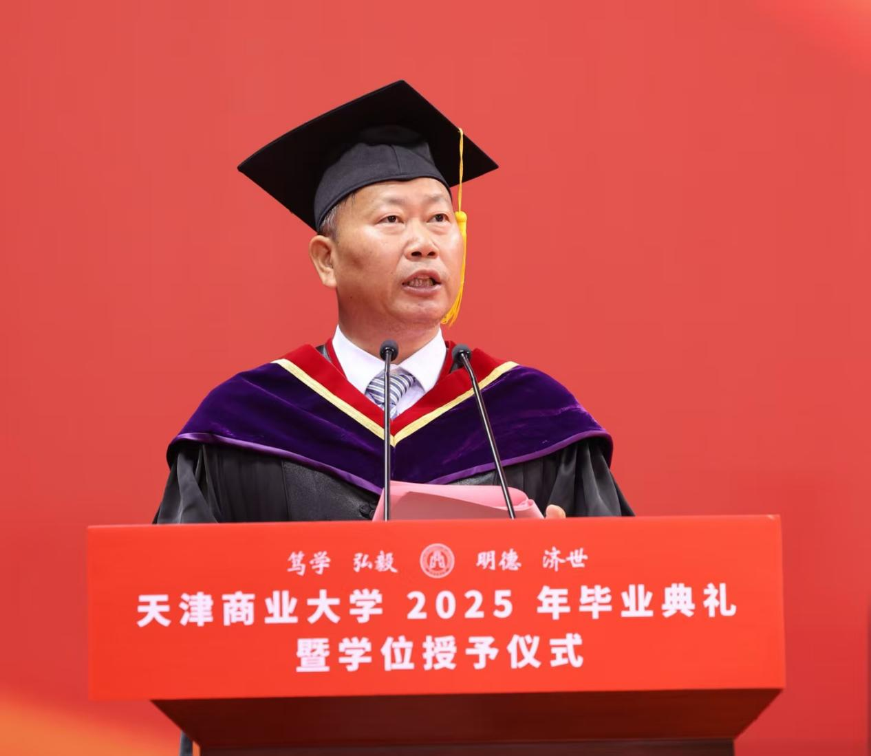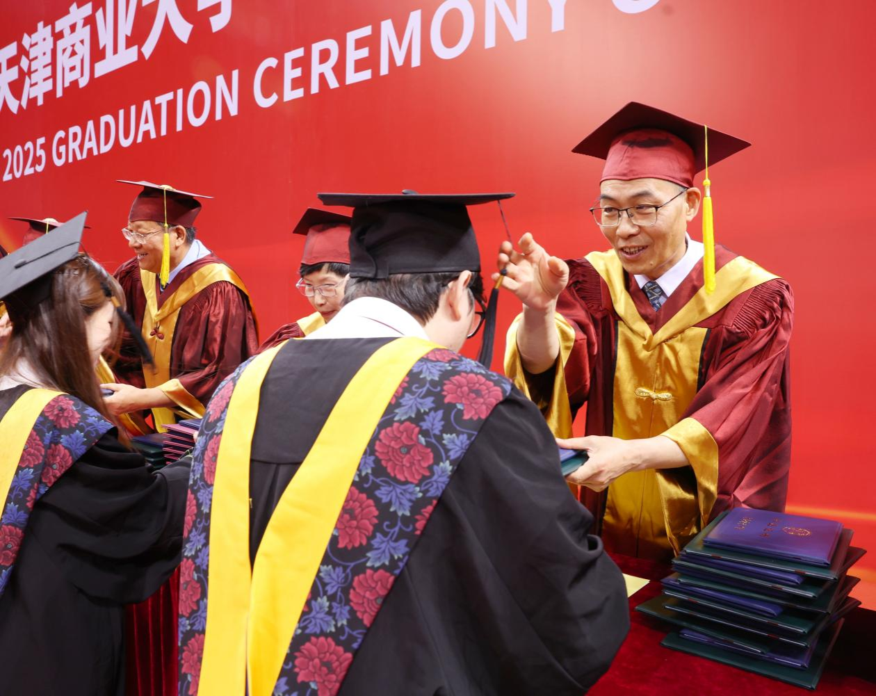 夏蝉鸣别序,青春赴新程。6月18日上午,天津商业大学2025年毕业典礼暨学位授予仪式在校体育馆隆重举行。校领导张亚、陈冠益、王立云、余江、齐恩平,党委组织部、党委统战部、教务处、研究生处、图书馆主要负责同志以及各学院院长等出席典礼,并逐一为毕业生颁发毕业证书和学位证书,与毕业生合影留念。