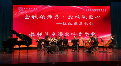 表彰大会结束后,学校特邀专业乐团艺术家,为全体教职工献上了一场以“金秋颂师恩 交响映匠心——致敬最美的你”为主题的教师节专场音乐会。艺术家们倾情演绎了《春之声圆舞曲》《爱的致意》《我和我的祖国》等十二首中外经典名曲,以悠扬的旋律致敬在各个岗位上默默奉献、辛勤耕耘的教职员工,表达深深的敬意与感谢。整场音乐会情感真挚、热烈,营造了尊师重教的良好氛围,增强了校园文化凝聚力。音乐会在全场齐声高唱《歌唱祖国》的激昂歌声中圆满落幕。