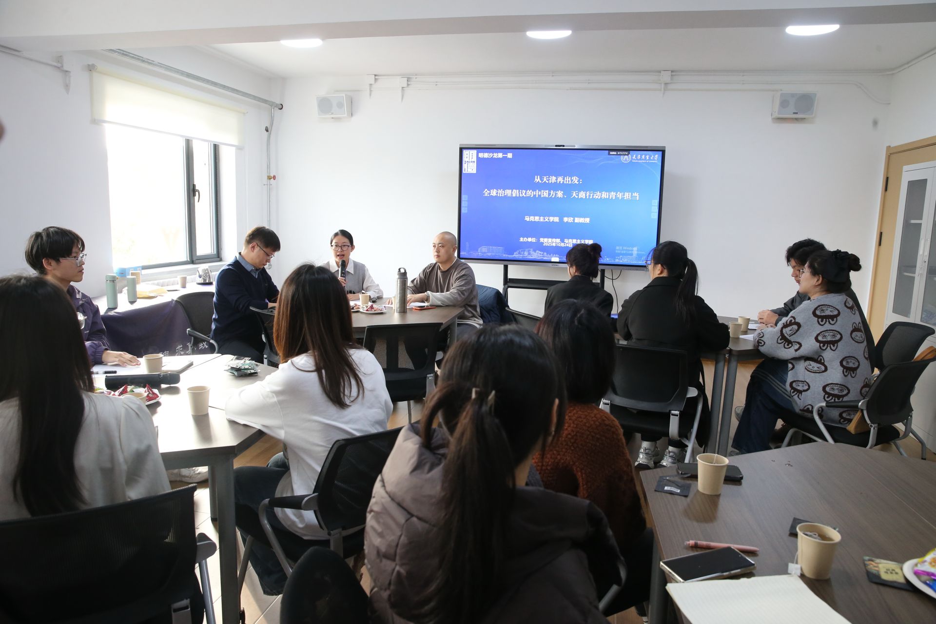 10月24日下午,首期“明德沙龙”在马克思主义学院503会议室举办。沙龙围绕“从天津再出发:全球治理倡议的中国方案、天商行动和青年担当”主题,邀请了马克思主义学院副教授李欣担任首期主讲人,外国语学院教师李智勇、国际交流处干部陈仕哲作为互动嘉宾,经济学院、机械工程学院、马克思主义学院、信息工程学院、外国语学院的学生代表参加沙龙活动。
