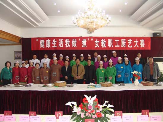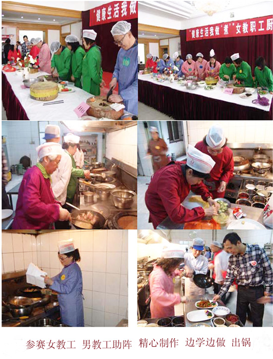 春意融融,其乐融融。3 月16 、17 日,校工会在瑞德厦餐厅举办了别开生面的“健康生活我做‘煮’” 女教职工厨艺大赛。这是庆祝“三八”节系列活动之一。市教育工会主席李子星,我校党委副书记杨万义、史习红在百忙中参加了活动,并为获奖队颁发了奖杯。校工会副主席宋树发、商学院旅游管理系高级实验师陆宏礼等 7 位评委担当大赛评比工作。女工委员会主任卫弘主持了比赛。来自全校 26 个分会组成的 17 个团队,51 名选手进行了比赛,近百名教职工到场观看。
