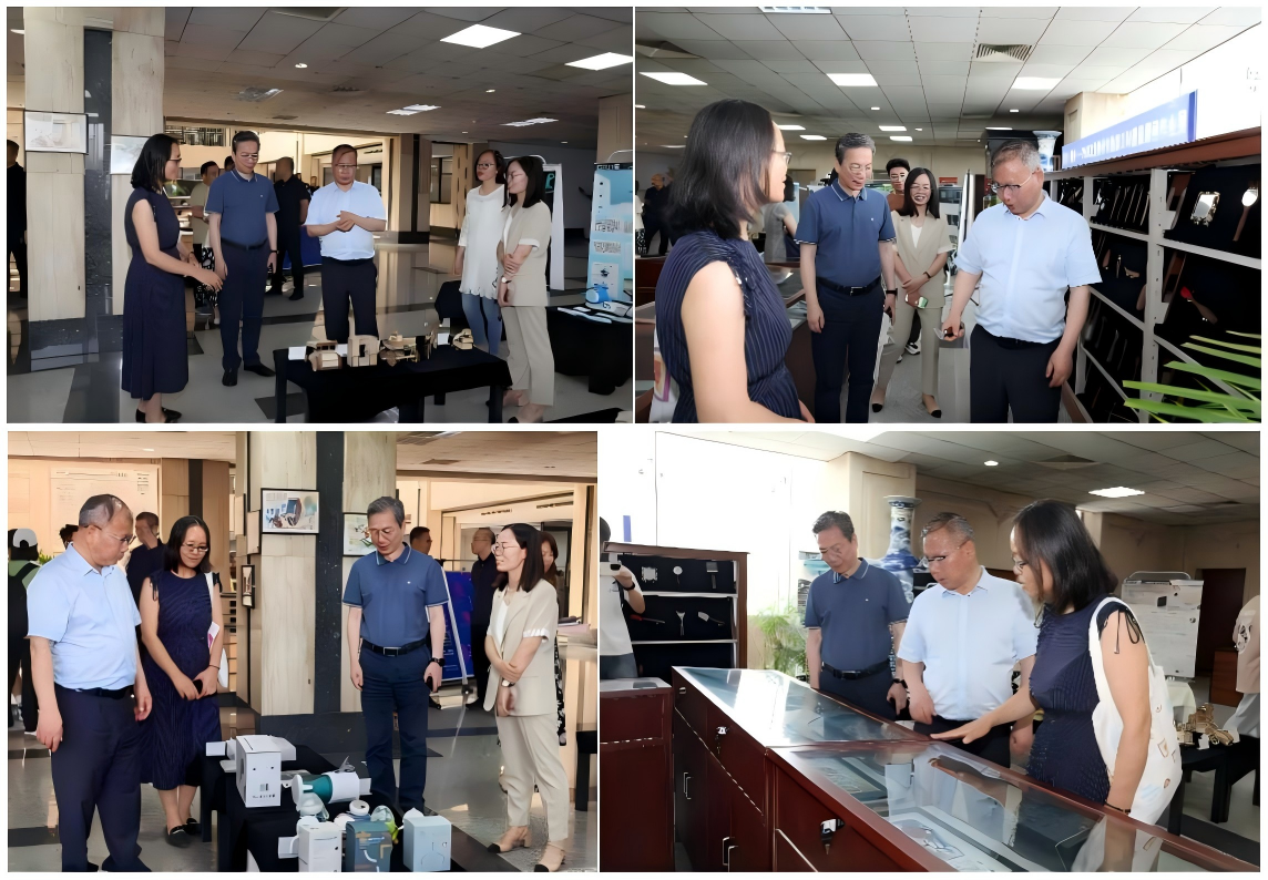 陈冠益、余江在观展过程中,逐一驻足观赏各展区作品,认真听取课程建设举措和作品成果介绍。在互动交流环节,校领导对工业设计专业新工科建设和课程作业成果表示高度肯定,特别指出本次展览既体现了新工科建设的育人成果,更展现出工业设计专业交叉学科的特点及学生扎实的专业基本功。