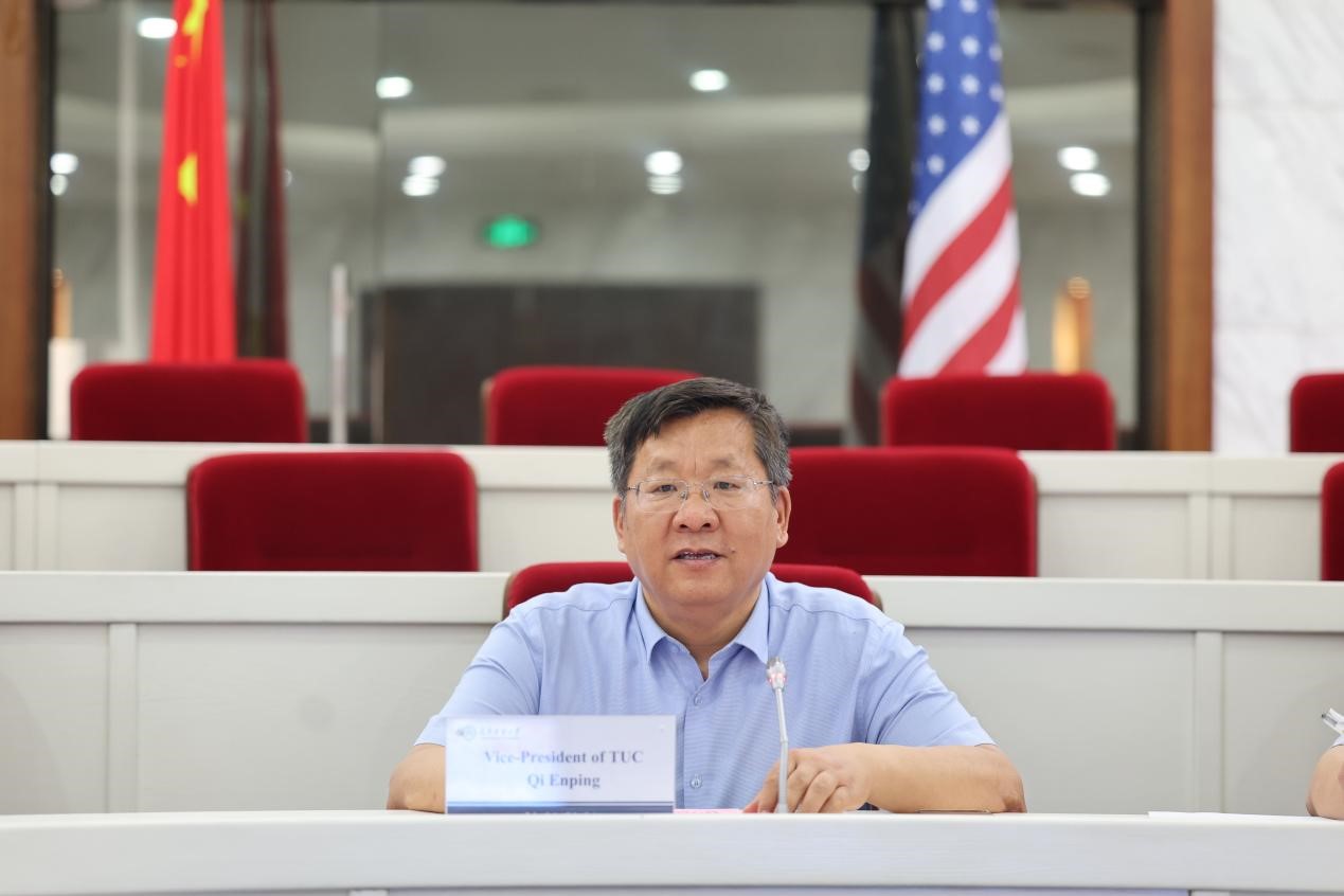 齐恩平副校长在仪式上致辞。他首先对特洛伊大学师生代表的再度来访表示热烈欢迎,并简要介绍了学校的办学情况及对美合作交流成果。他强调,中美青年文化交流活动对于促进两国关系健康稳定发展意义重大,契合时代发展的脉搏。此次研修活动为两国青年提供了宝贵的学习交流平台,希望美国青年朋友们深入感知中国文化,体验中国教育特色,在互动中增进知识、深化友谊。