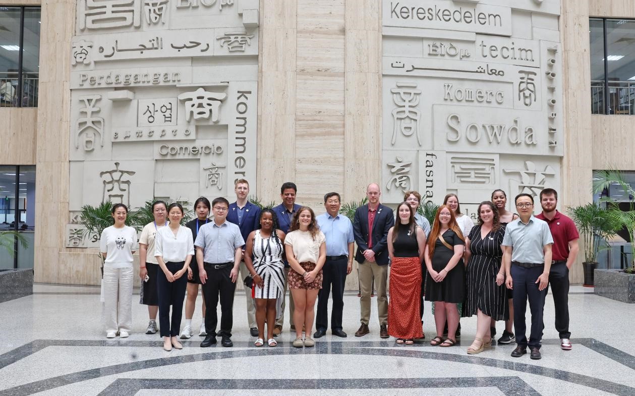 6月19日,“津彩行”天津商业大学美国青年使者来华交流研修营(第四期)开营仪式在学校图书馆明德厅举行。来自美国特洛伊大学的14名师生参加活动。天津商业大学副校长齐恩平,国际交流处主要负责同志及相关工作人员、学生志愿者出席仪式。