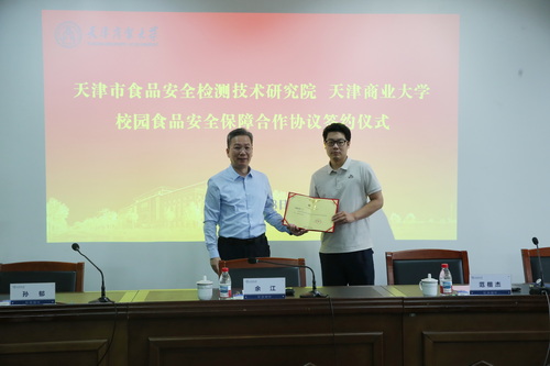 会上,学校与市食检院签署校园食品安全保障合作协议,余江为市食检院专家颁发“校园食品安全顾问”聘书,“政校协同”模式正式启动。