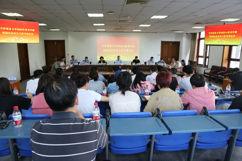 9月18日下午,天津商业大学召开2025年秋季学期校园食品安全专项会议。校党委常委、副校长余江,驻校纪检监察组副组长孙郁出席会议。天津市食品安全检测技术研究院党委书记、院长范楷杰及专家团队,北辰区市场监督管理局副局长任志刚,安全管理科科长宋天水应邀出席。后勤处膳食中心、食材配送中心、监管科管理人员,自营食堂主管及外包食堂负责人,项目经理共32人参加会议。