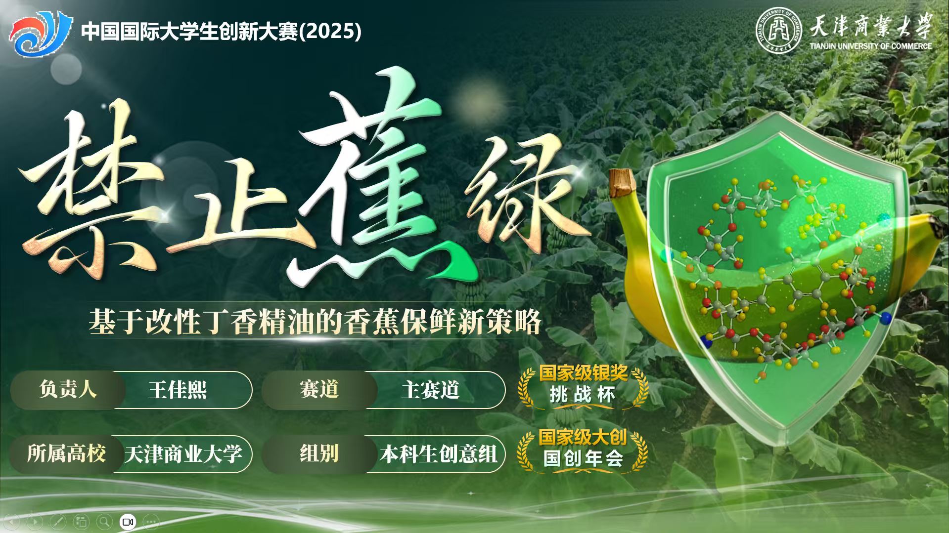 “禁止‘蕉’绿”团队研发的新型生物保鲜剂,能将香蕉在常温下的货架期延长至21天,以安全、低价等特性,打破了国外在生物保鲜剂领域的技术垄断,为绿色农业注入科技动能。团队旨在为更多食品提供价廉物美的保鲜方案,以提升助农实效、助力乡村振兴。