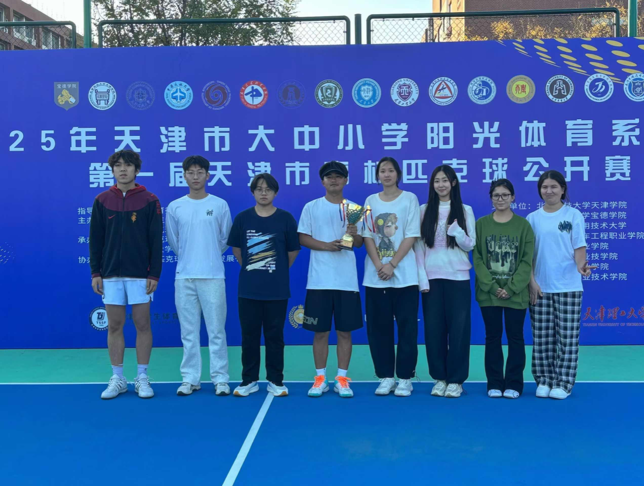 11月1日,天津市首届高校匹克球团体赛在天津理工大学顺利落幕。天津商业大学代表队经过多轮激烈角逐,从小组赛突围至决赛阶段,最终战胜对手斩获冠军,充分展现了我校学子在体育竞技领域的实力与拼搏精神,为学校赢得荣誉。